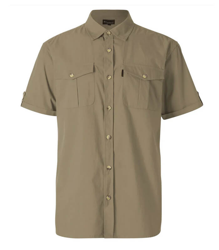 La camisa de manga corta para hombre Safari de la marca Pinewood está confeccionada en tejido prelavado que le da una sensación extra suave. Cuenta con dos prácticos bolsillos en el pecho con cierres de botones. El material duradero lo convierte en una prenda versátil, igualmente adecuada para el uso diario y las aventuras al aire libre.