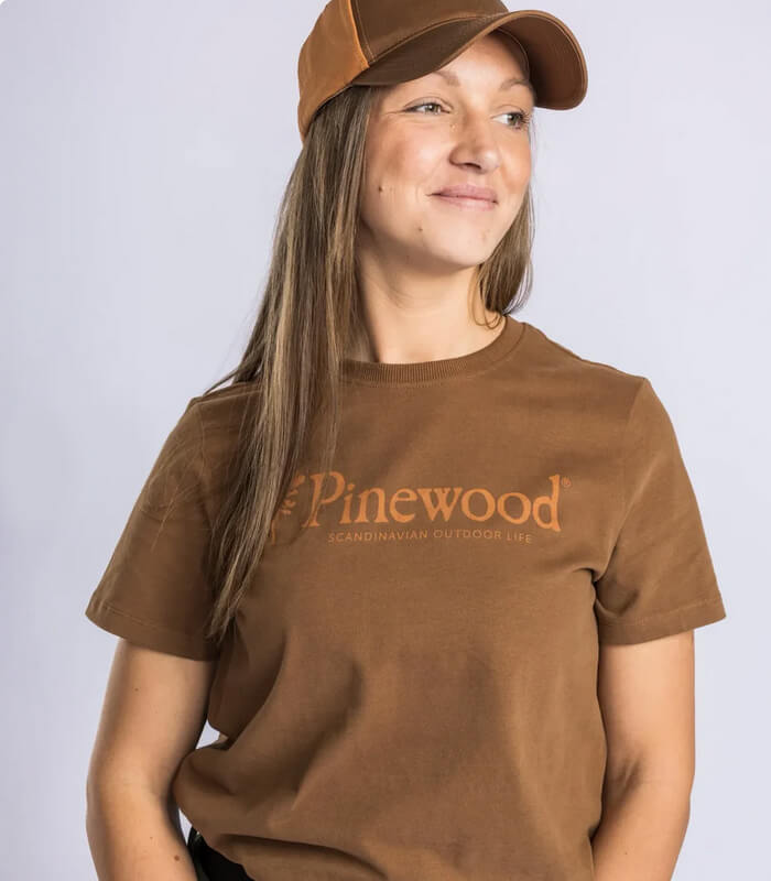 Camiseta ajustada en algodón suave con motivo Pinewood en el pecho. De cuello redondo. Corte femenino. Esta prenda ha sido fabricada según el estándar Oeko-Tex®.