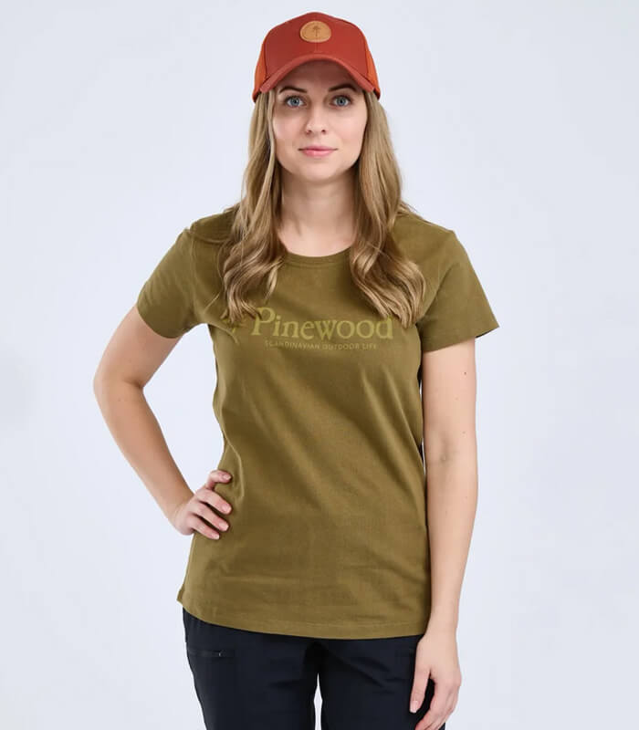 Camiseta ajustada en algodón suave con motivo Pinewood en el pecho. De cuello redondo. Corte femenino. Esta prenda ha sido fabricada según el estándar Oeko-Tex®.